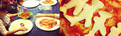Above we have a car pizza, butterfly pizza, flower pizza, below, pizzas in the making, and finally an aeroplane pizza! After preparing the exotic toppings, we popped them in the oven for 10 minutes before taking them home for tea.