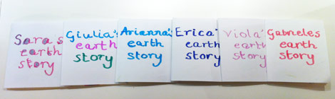 Apart from this fanciful teatime snack, we worked on some little “earth stories” with representations for the some of natural elements we live with: the sun, the moon, the stars, rain, rainbows, fire.