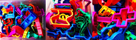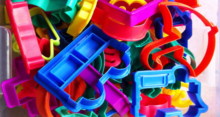 So let’s play pick-your-own inside with a couple of buckets full of colourful shapes (also known as plastic cutters).