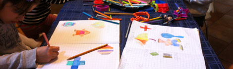 Alice, Davide, Viola, Tito and Lorenzo loved creating groups of similar objects and making categories. They transferred their choices on to paper by drawing round them, colouring, and labelling.