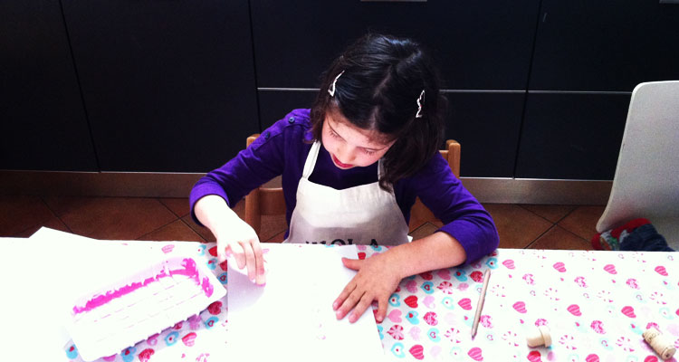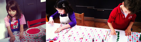 Today’s mission was to paint the alphabet using only a few colours and a set of wine cork stoppers. We began with a little exercise, drawing each letter with our eyes closed. All the children are familiar with the alphabet but have never pencil drawn the letters freehand, without looking. Easier than you think, if you open your eyes between each letter!