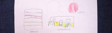 With the little ones we spied the letter A, with ambulance, apple and abacus. We made drawings of the things and talked about what they do.
