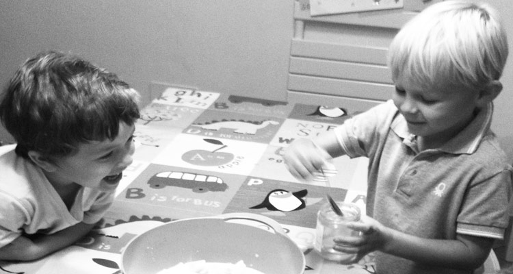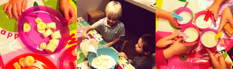 Today we worked with frothy milkshake colours: cutting, mixing, stirring and sipping, of course! Together we made a delicious concoction, fit for Lorenzo, Serghej, Ruben and Viola. We all enjoyed a second helping!