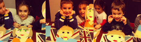 We had a lot of fun with our faces today, making, cutting and sticking our hair, eyes, eyebrows, cheeks, nose and lips. The little paper self portraits included our shoulders with blue t-shirts for the boys and an orange top with green heart-shaped hair clips for Elisa.