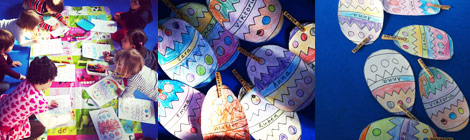 The children decorated individual paper eggs, with their coloured crayons of choice.