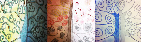 We began the year researching the golden ratio in nature and art composition, and followed this investigation with individual representations of trees composed of spiral shapes. We were also inspired by Austrian symbolist painter Gustav Klimt’s, Tree of Life.